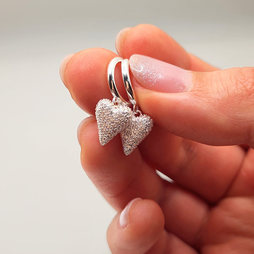 Si buscas unos aros que puedas usar todos los días, que sean cómodos pero con un detalle especial, estas argollas huggie son la elección perfecta. El corazón colgante con circones aporta un brillo sutil y romántico que transforma cualquier look sin exagerar.