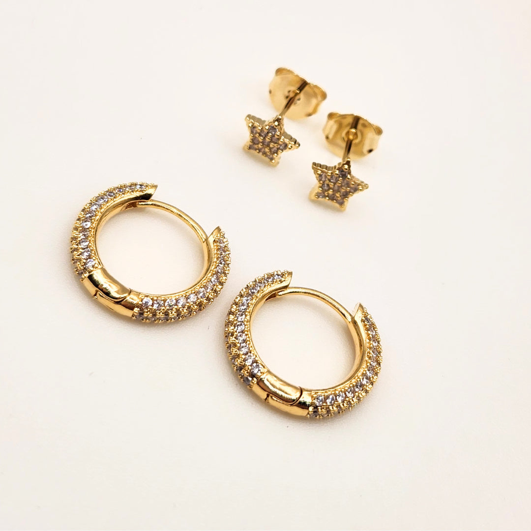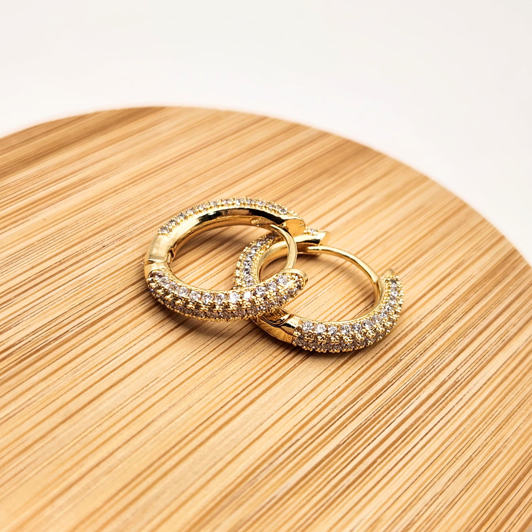 Argollas enchapadas en oro y circones