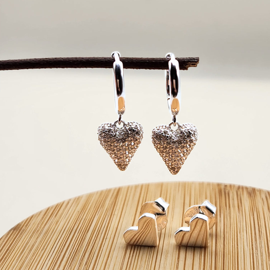 Si buscas unos aros que puedas usar todos los días, que sean cómodos pero con un detalle especial, estos aros de plata en forma de corazón son la elección perfecta. Ideales para combinar con otros aros y crear un look especial o si te gustan los aros pequeños y sutiles.