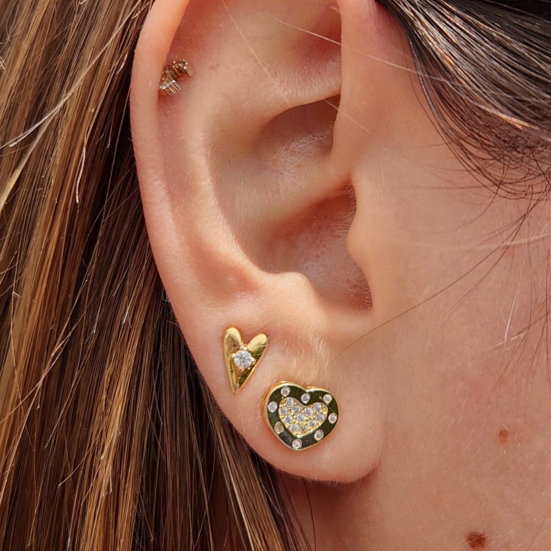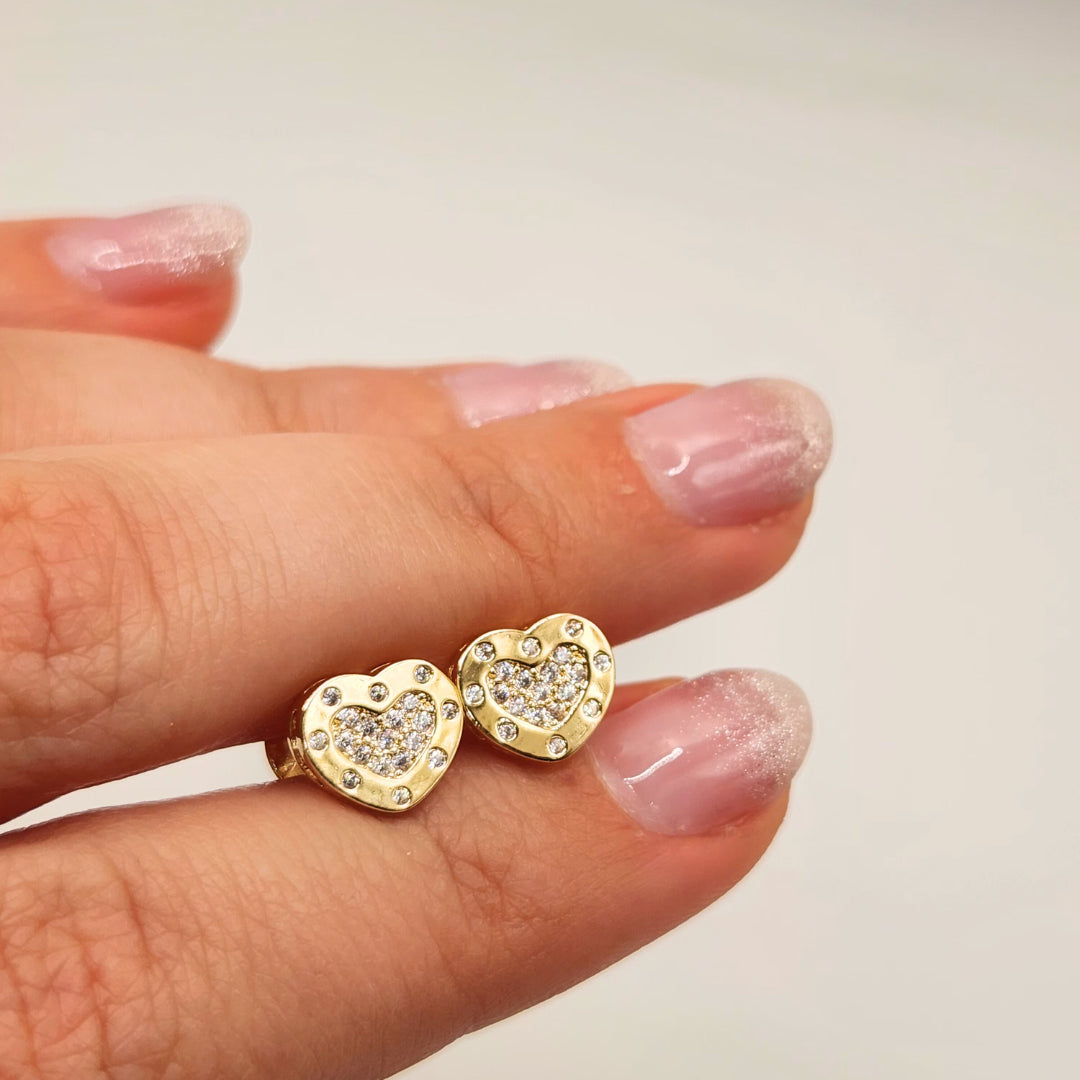 Aros corazón enchapado en oro y circones
