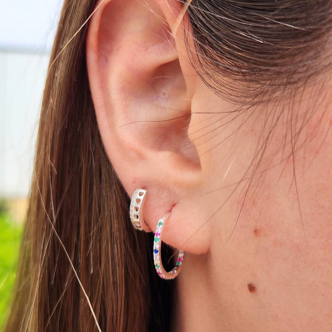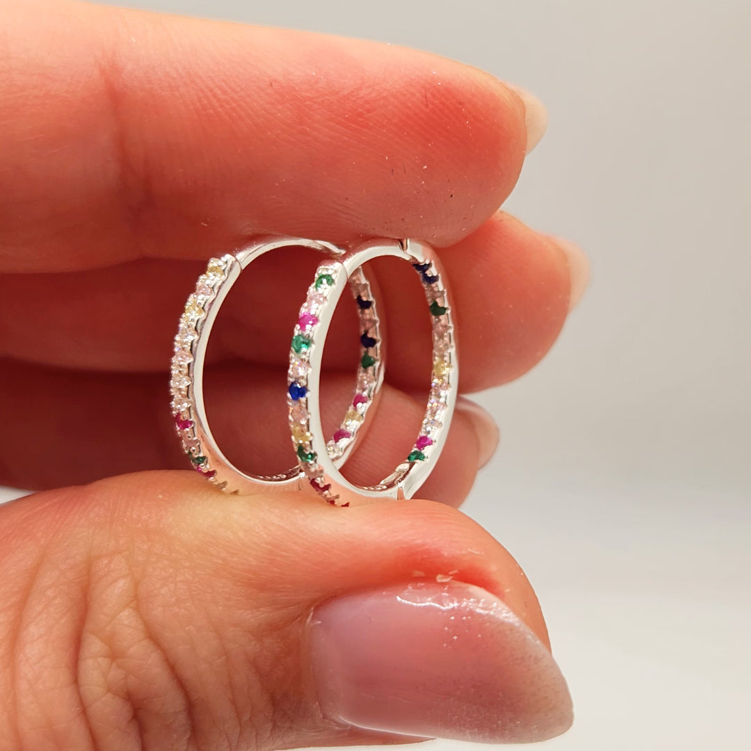 Argollas plata y circones de colores