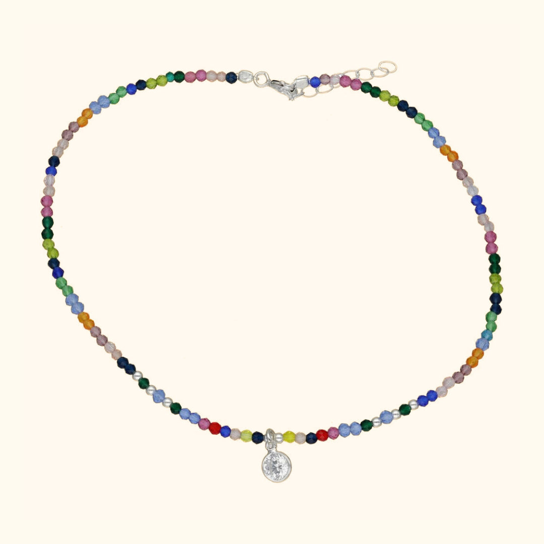 Tobillera cristales multicolor y circón